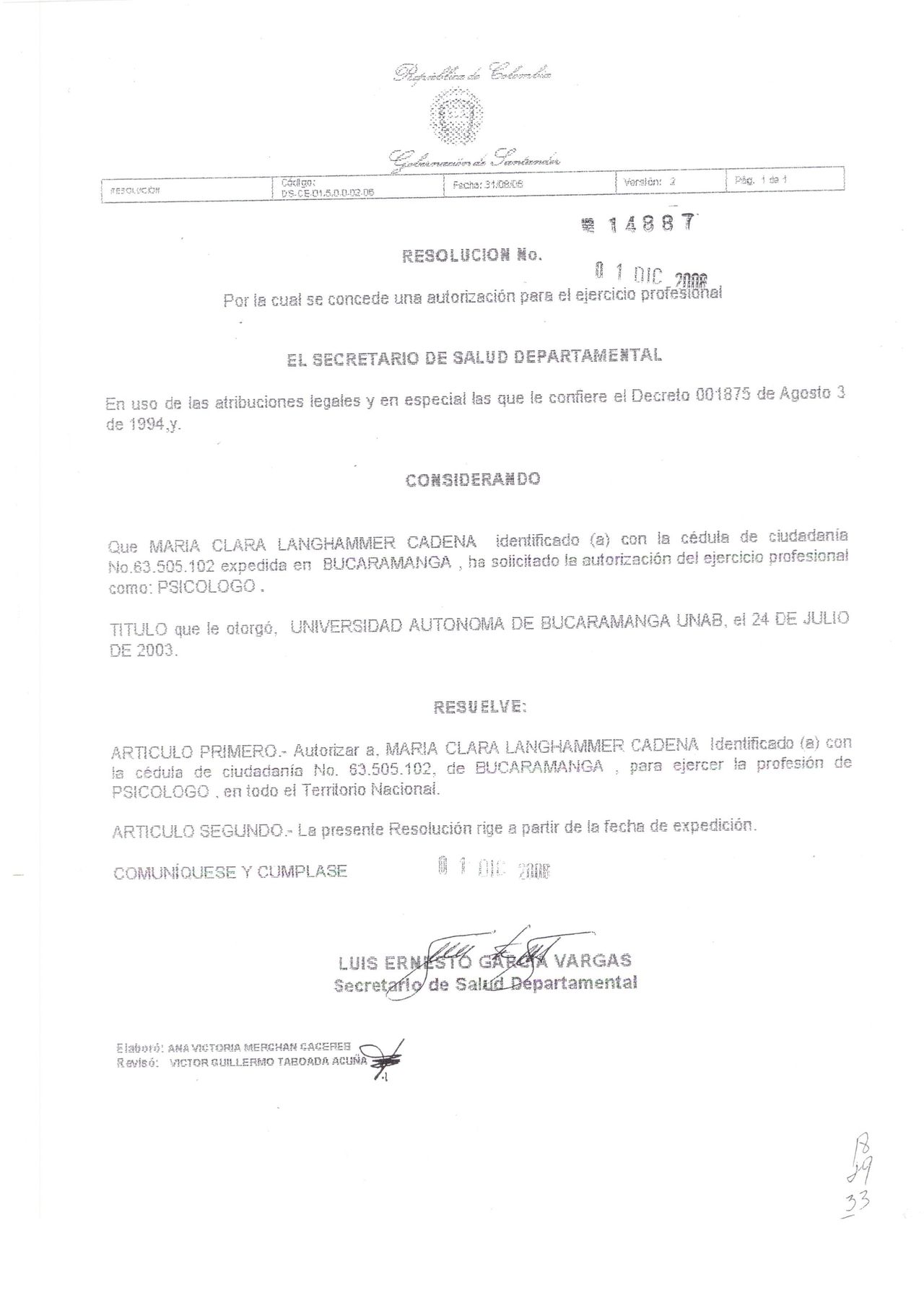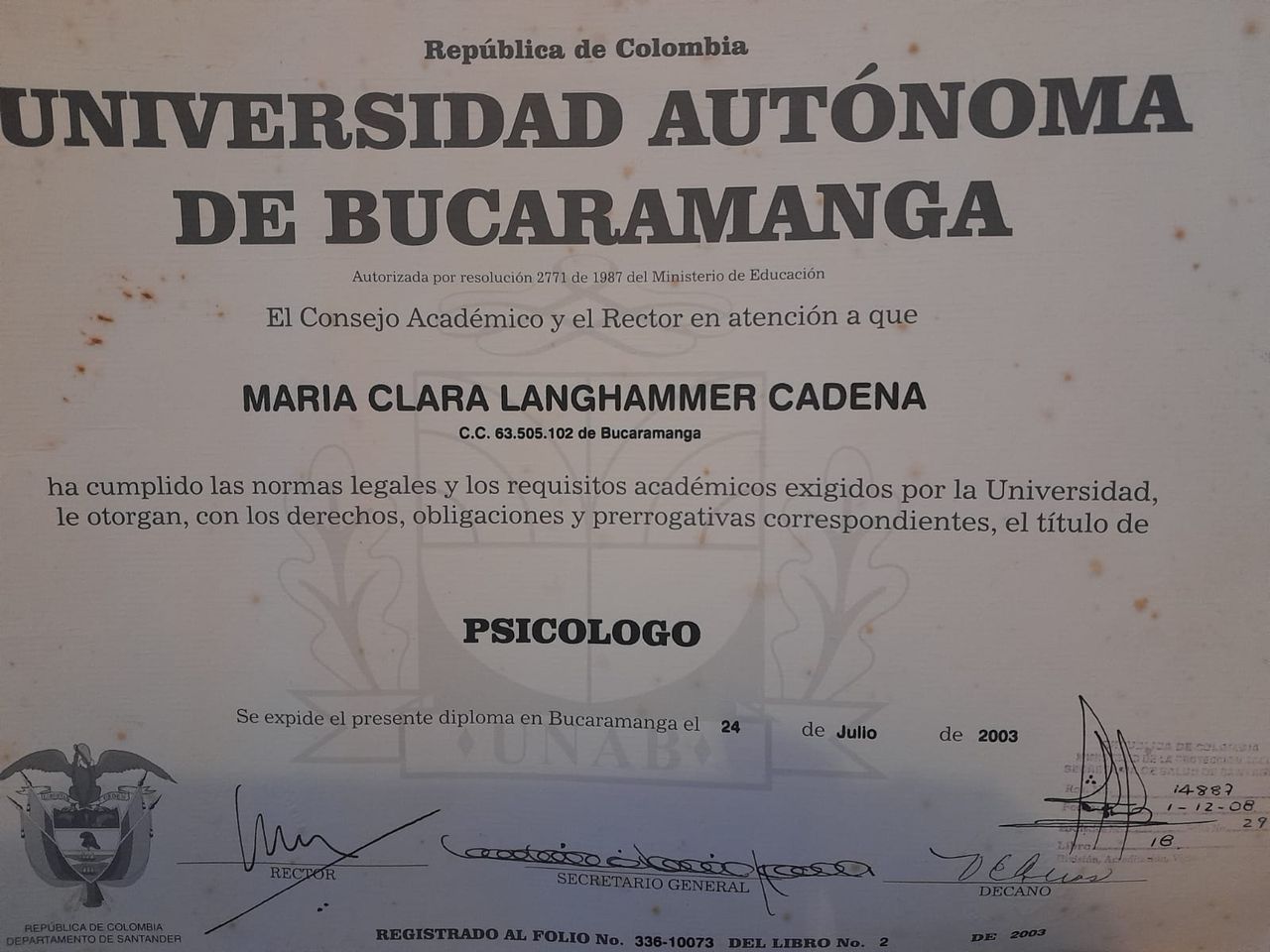 - PSICOLOGA CLÍNICA UNIVERSIDAD AUTÓNOMA DE BUCARAMANGA